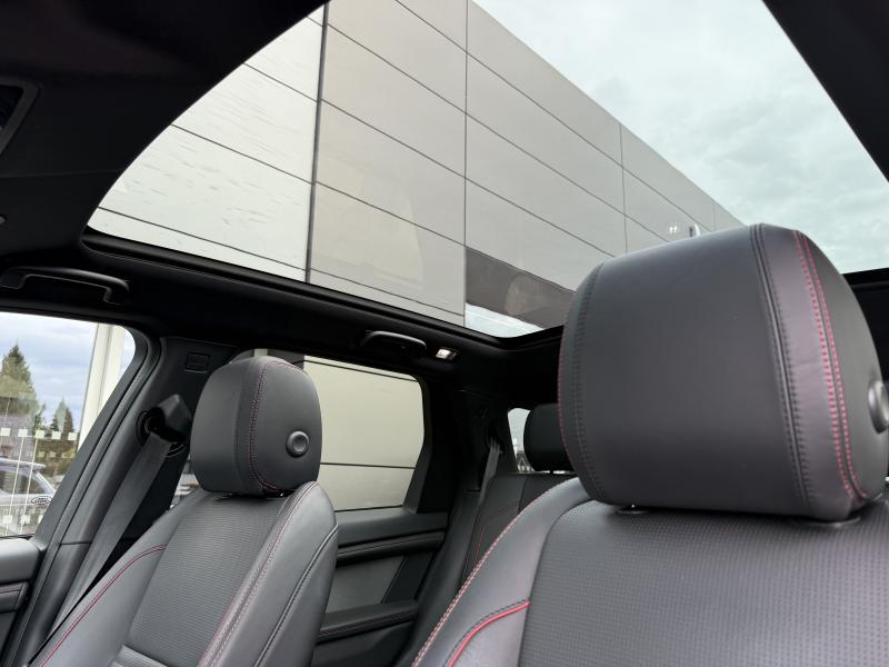 CO2:37gr/km cold climate pack, secure tracker 12-month subscrlption , remote, external sound eng enhancemt, low copper brake pads, charging equipment-var 2 basic , charging cable-mode 3 var 2 , delete cooling vents and 1 usb in third row, voice control, digital audio broadcast dab radio, pivi - diamond, navigation pro, wi-fi, sos assistance call, online pack with data plan, front passenger seat isofix, pivi pro connected , twin front cupholders, passive suspension, electric rear axle drive, tow prep/bike carrier euro, towing eye - body col/narvik black, gloss black door mirror caps, heated, electric, power fold door mirrors with approach lights and auto-dimming driver side, auto-dimming interior rear view mirror, ebony headlining, 5 seats, driver seat memory, 60:40 load through rear seats, rear centre headrest, map pocket - mounted, heated and cooled front seats, windsor leather seats, door armrest - leather, rear armrest with twin cupholders, red stitching, ebony / ebony, ip contrast-ebony/ebony, heated washer jets, starter system - fead integrated, electric cabin pre-conditioning, centre console with armrest, steering column lock, manually adjustable steering column, deployable scuttle air bag, bright metal pedals, filler neck phev, locking wheel nuts, gloss black discovery scrlpt, tailgate finisher - black, tyre pressure monitoring system tpms , 20\" wheel, loadspace cover, automatic headlight levelling, daytime running lights drl , black grille, matrix led headlights with signature drl, adaptive cruise control, emergency braking, keyless entry, powered tailgate / boot lid, bbus with tilt sensor, double locking, intrusion sensor, satin chrome gearshift paddles, active transmission warming, body-coloured door claddings, gloss black side vents, bmpr lwr vlc-narvik blk style 2, door trim panel - tpo soft grain, lane keep assist, traffic sign recognition and adaptive speed limiter, driver condition monitor, blind spot assist, forward facing camera, rear traffic monitor, rear collision monitor, connected navigation pro, windsor leather wrapped instrument panel topper, console lid prem leather, morzine headlining, shadow aluminium trim finisher, door stitch - red, row 1 usb x 1, double charge socket ac/dc type 2 combo, tyre recommended plate - non english, petrol/electric hybrid, leather gearshift, wireless charger with booster - 5 freq, seat cushion power fore/aft, seat cushion power height, seat cushion power tilt, seat squab power recline, front headrest manual height, front seat bolster - power, front seat lumbar - 4 way, apple carplay® subject to availability , android auto™ subject to availability , connected navigation data, esim, ebony morzine headlining, public charging cable, front and rear parking aid, 1.5l aj20 p3h phev, manual slide and recline rear seats, discovery sport, manual slide and recline second row seats, group 1, d8, r-dynamic hse, styling - r-dynamic, black exterior pack, tyre config 1, powerpack 07, interior enviroment pack 83, 8-speed automatic transmission, two-zone climate control with second row vents and temperature control, row 2 usb x 2 & row 3 usb x 1, silicon silver, reduced section steel spare wheel, fixed panoramic roof, premium cabin lighting, meridian™ surround sound system, configurable dynamics, ebony windsor leather seats with mars red stitch, privacy glass, home charging cable, r-dynamic hse 309ps auto, 20\" style 5076, satin dark grey, wireless device charging with phone signal booster, black contrast roof, 14-way heated & cooled electric seats with driver memory with 2-way manual headrests, production build for retailer ordering, leather twin-rim steering wheel, analogue dials with central tft display, metal treadplates with r-dynamic branding, rear camera, 1.5l aj20 p3h phev, 23my, front spring load -class h, rear spring load - class o
