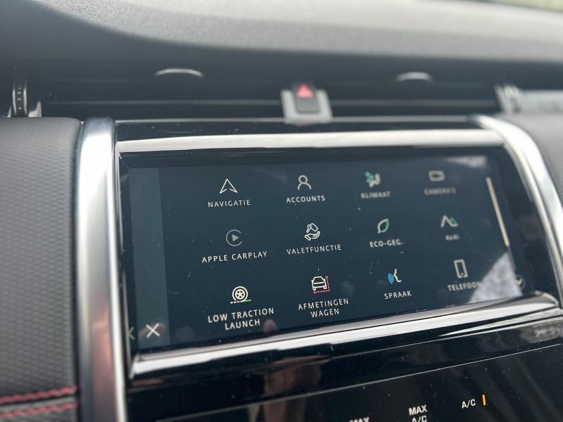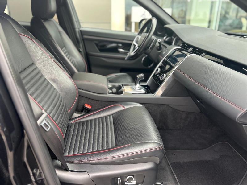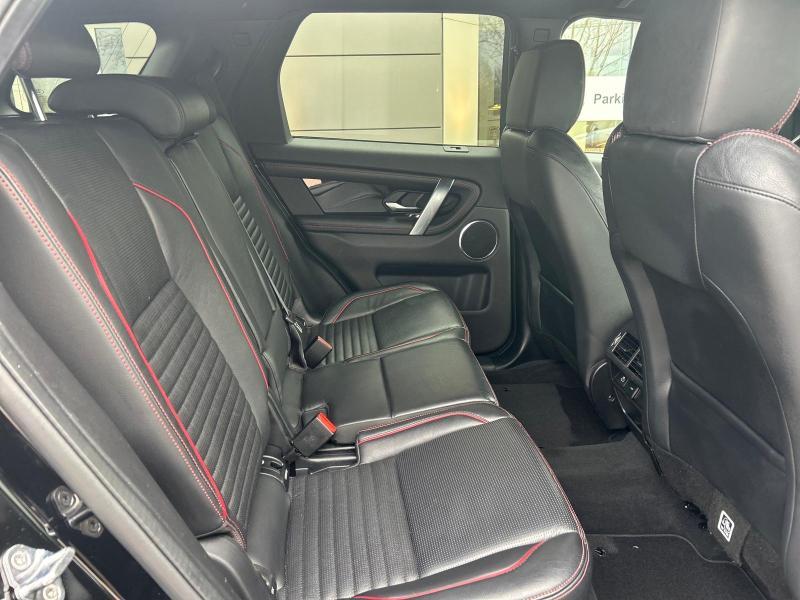 CO2:177gr/km secure tracker 12-month subscrlption , remote, low copper brake pads, two-zone climate control with second row vents, delete cooling vents and 1 usb in third row, voice control, digital audio broadcast dab radio, sound system, pivi - diamond, navigation pro, wi-fi, sos assistance call, online pack with data plan, front passenger seat isofix, pivi pro connected , passive suspension, efficient driveline, tow prep/bike carrier euro, towing eye - body col/narvik black, tyre repair system, gloss black door mirror caps, heated, electric, power fold door mirrors with approach lights and auto-dimming driver side, auto-dimming interior rear view mirror, ebony headlining, perforated leather steering wheel, 60:40 load through rear seats, rear centre headrest, unheated front seats, perforated grained leather seats, rear armrest with twin cupholders, seat-back pockets on front row, red stitching, door armrest - triton grain, ebony / ebony, ip contrast-ebony/ebony, analogue dials with central tft display, heated washer jets, starter system - fead integrated, centre console with armrest, metal treadplates with r-dynamic branding, steering column lock, manually adjustable steering column, deployable scuttle air bag, bright metal pedals, locking wheel nuts, gloss black discovery scrlpt, tailgate finisher - black, tyre pressure monitoring system tpms , 18\" wheel, loadspace cover, daytime running lights drl , manual headlight levelling, black grille, cabin lighting, led headlights, cruise control and speed limiter, emergency braking, rear animated directional indicators, push button start, bbus with tilt sensor, double locking, intrusion sensor, satin chrome gearshift paddles, body-coloured roof, body-coloured door claddings, gloss black side vents, bmpr lwr vlc-narvik blk style 2, door trim panel - tpo/pvc, lane keep assist, traffic sign recognition and adaptive speed limiter, driver condition monitor, forward facing camera, connected navigation pro, console lid pvc, ip - pvc triton grain, door stitch - red, tyre recommended plate - non english, leather gearshift, seat cushion power fore/aft, seat cushion power height, seat cushion power tilt, seat squab power recline, front headrest manual height, front seat lumbar - 4 way, apple carplay® subject to availability , android auto™ subject to availability , connected navigation data, esim, front and rear parking aid, 2l aj21 d4m, 12-way electric front seats with 2-way manual headrests, manual slide and recline rear seats, discovery sport, manual slide and recline second row seats, r-dynamic s, styling - r-dynamic, black exterior pack, powerpack 12, row 1 usb x 1, interior enviroment pack 87, 9-speed automatic transmission, 5 seats, r-dynamic s 163ps auto, santorini black, powered tailgate / boot lid, production build for retailer ordering, ebony grained leather seat facings with mars red stitch, row 2 usb x 2 & row 3 usb x 1, 18\" style 5088, gloss black, heated windscreen, privacy glass, gloss black trim finisher, twin front cupholders, morzine headlining, ebony morzine headlining, group 1, d8, tyre config 1, 3d surround camera, 22my, front spring load -class g, rear spring load - class i