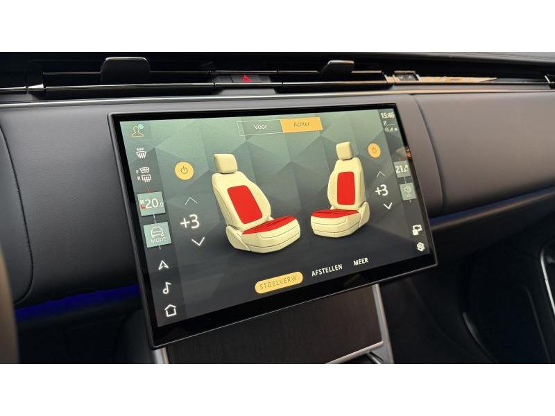 CO2:17gr/km 008aa, remote, external sound eng enhancemt, brake pads low copr fr/ zero copr nao rr, brake disc size frt 19/rr 19, charging cable-mode 3 var 2 , three-zone climate control, air quality sensor, voice control, digital audio broadcast dab radio, meridian™ sound system, online pack with data plan, wi-fi enabled with data plan, 026bk, loadspace partition net, wireless device charging, pivi pro connected , electronic air suspension, open differential with torque vectoring by braking, tyre repair system, gloss black door mirror caps, heated, electric, power fold door mirrors with approach lights and auto-dimming, ebony headlining, soft grain leather steering wheel, rear centre headrest, driver and passenger seat memory, electrically reclining rear seats, perforated windsor leather seats, rear armrest with twin cupholders, power cushion extension, heated rear seats, door armrest-split leather pvc, ip contrast - ebony/ebony, front driver display, heated windscreen, heated washer jets, stop/start, twin-speed transfer box high/low range , electric cabin pre-conditioning, centre console with armrest, electrically adjustable steering column, bright metal pedals, powerpack 57, locking wheel nuts, 22\" wheel, loadspace cover, front fog lights, automatic headlight levelling, daytime running lights drl , headlight power wash, configurable cabin lighting, pixel led headlights with signature drl, adaptive cruise control with steering assist, animated directional indicators, powered upper and lower tailgate, double locking, intrusion sensor, satin chrome gearshift paddles, body-coloured roof, lane keep assist, traffic sign recognition and adaptive speed limiter, 3d surround camera, forward facing camera, rear collision monitor, europe nav region 1, petrol plug-in hybrid, twin-blade driver sunvisor with illuminated vanity mirrors, 116az, ebony carpet, wireless device charging, apple carplay® subject to availability , android auto™ subject to availability , 183ha, public charging cable, front and rear parking aid, pvc seatback, 20-way heated and ventilated electric front seats with power recline heated rear seats, noble chrome controls, 308ba, 328aa, 382aa, secure tracker pro, natural black birch veneer, 20-way heated and ventilated electric front seats with power recline heated rear seats, ebony perforated windsor leather seats with ebony interior, home charging cable, shadow exterior pack, ebony headlining, santorini black, privacy glass, sliding panoramic roof, heated steering wheel, 22\" style 1073 gloss black, clearsight interior rear view mirror